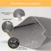 Izgatavots no augstas kvalitātes, mīksta materiāla, paklājiņš ir saudzīgs pret kaķa ķepām un viegli tīrāms — vienkārši izkratiet saturu, noskalojiet ar ūdeni vai izsūciet ar putekļsūcēju.