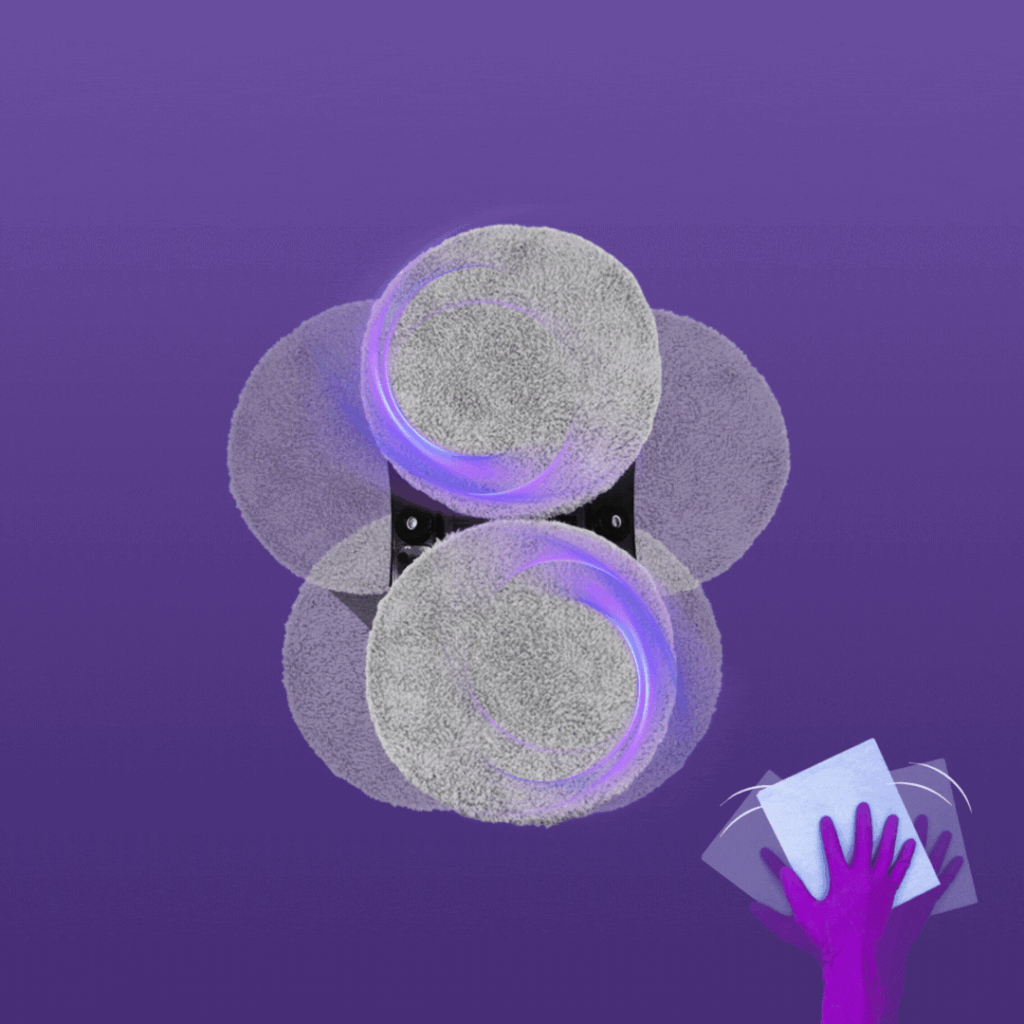 Robots nekustas tikai vienā virzienā – tas izmanto rotējošus spilventiņus, lai atdarinātu roku tīrīšanas kustības, efektīvāk atbrīvojot un noņemot netīrumus.