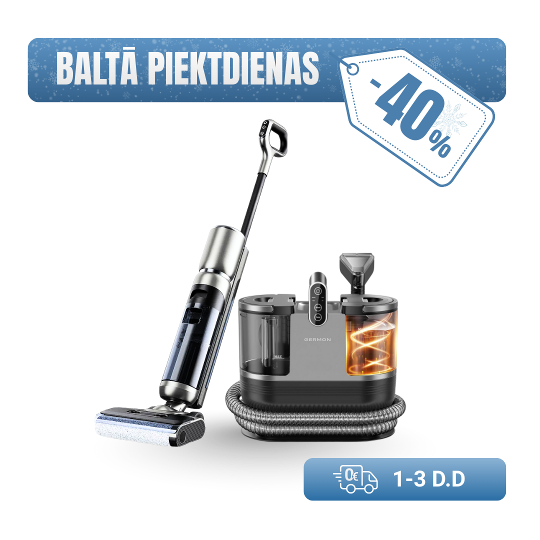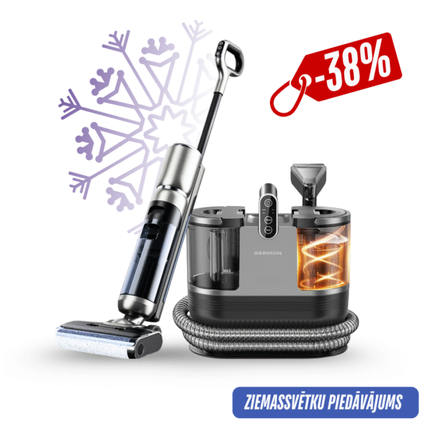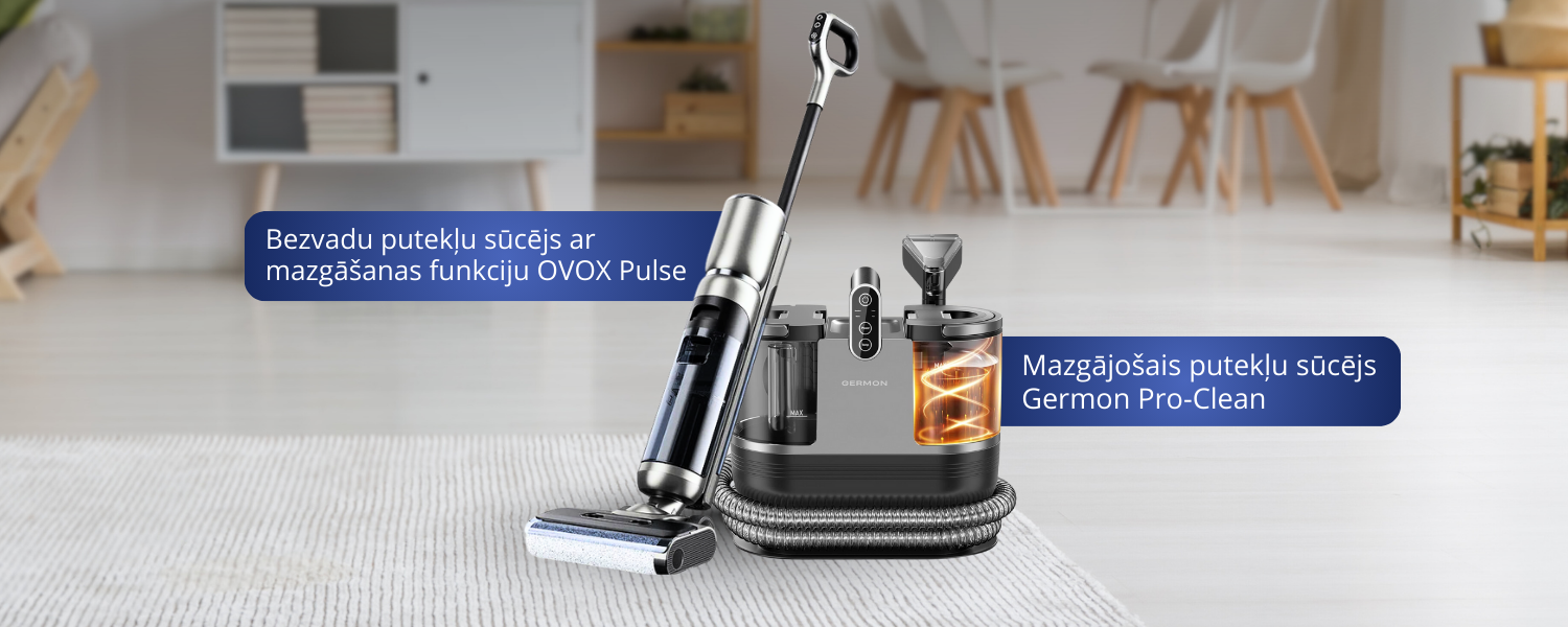 Parūpējiet par visaptverošu mājas tīrību ar bezvadu putekļsūcēju ar mazgāšanas funkciju OVOX Pulse un mazgājošo putekļsūcēju Germon Pro-Clean komplektu!
