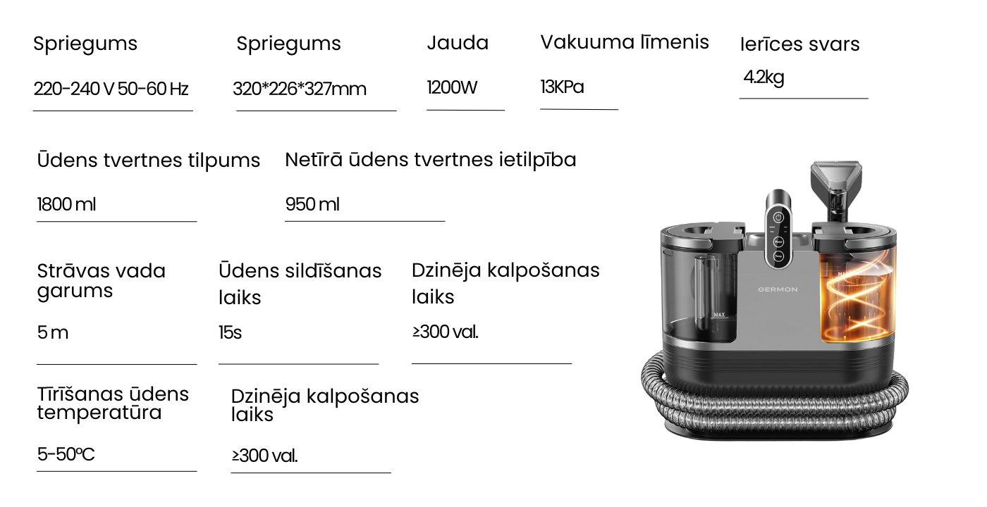 Es ļoti iesaku šo Germon ierīci ikvienam, kam ir mājdzīvnieki. Tā ļoti ātri notīrīja netīrumus, un krēsls izskatās kā jauns!